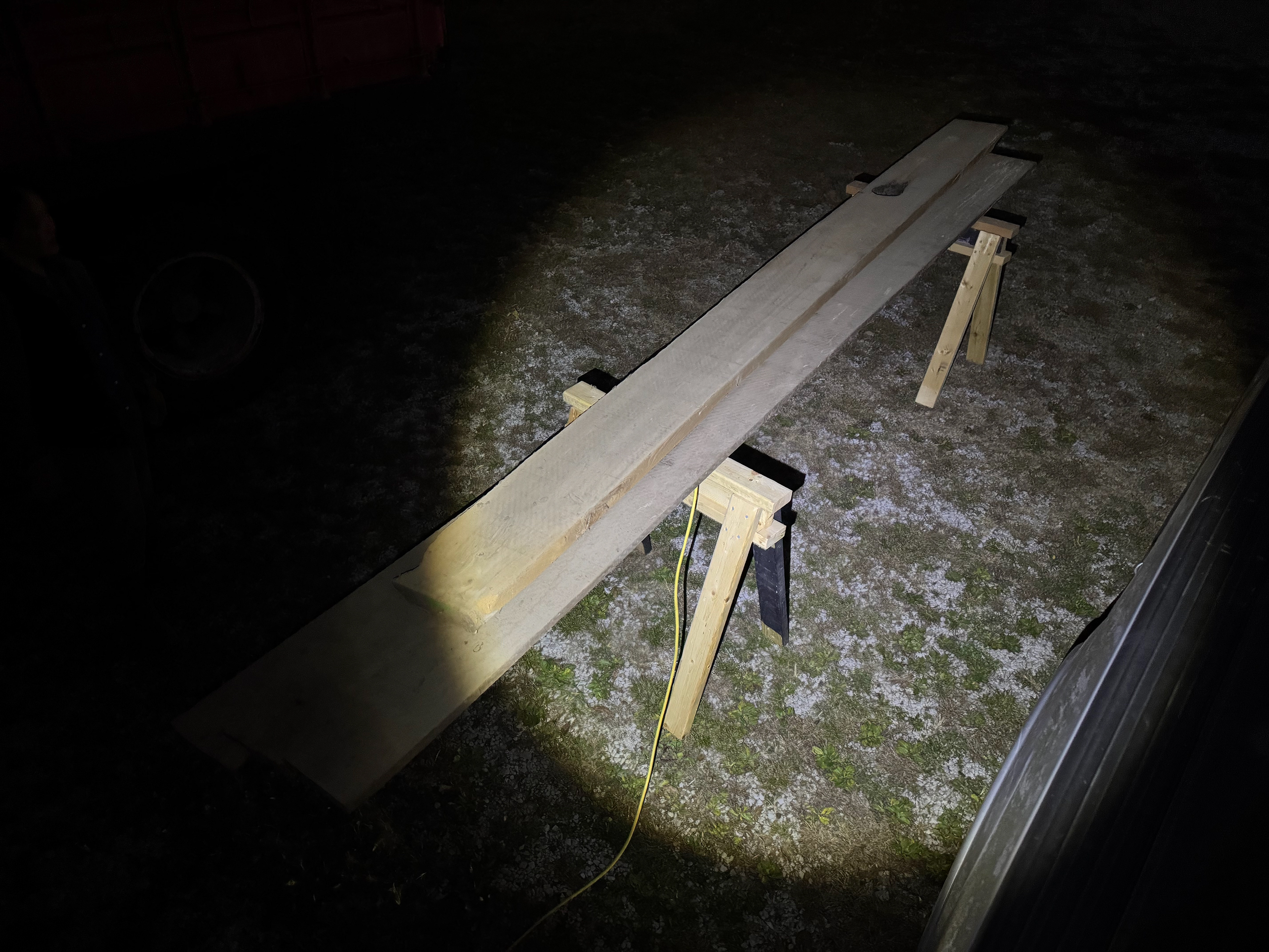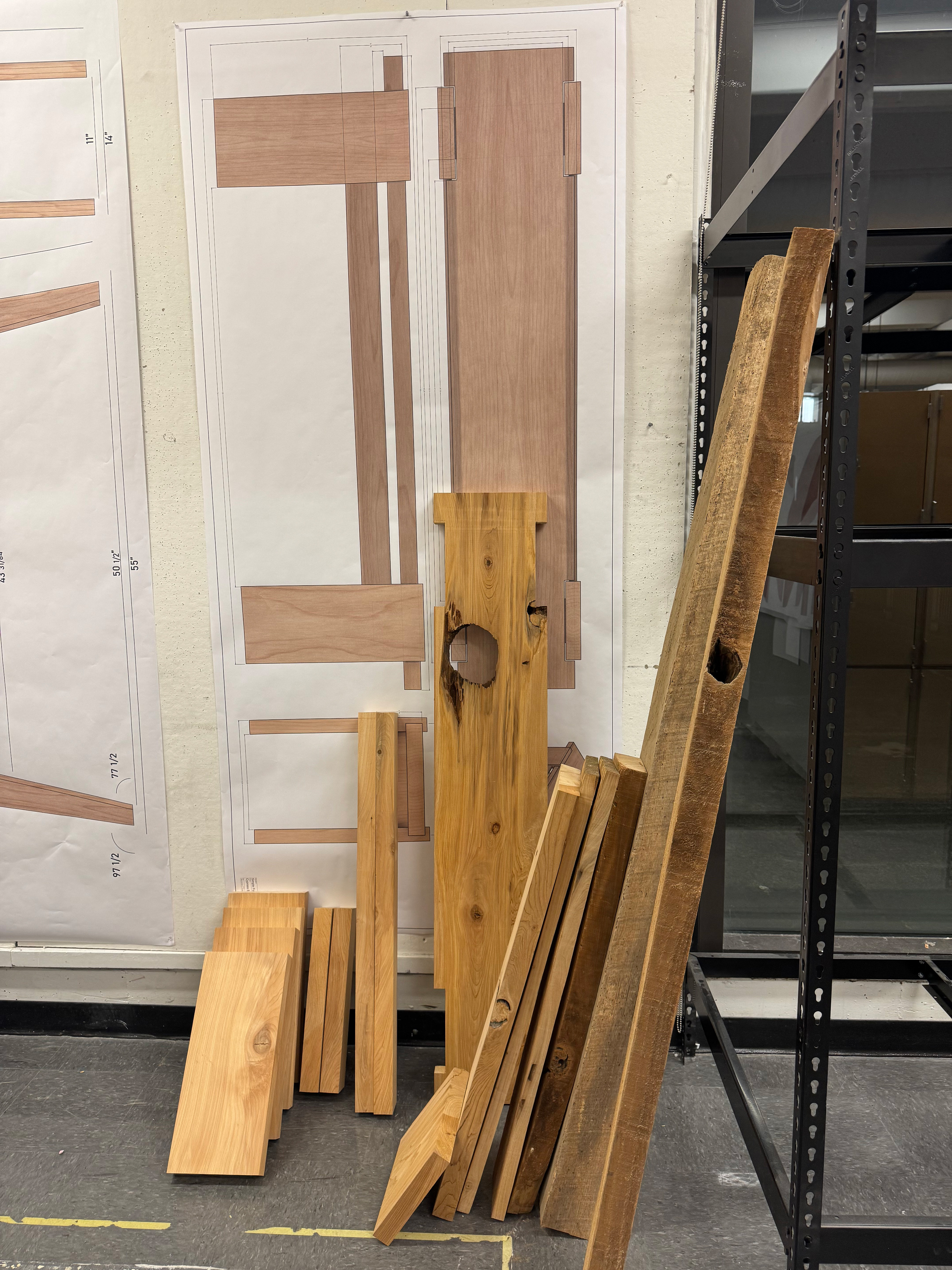 Step one was finding the wood. About 50 years ago, my great grandpa cut down a massive cypress tree in his front yard and had it milled. The wood sat in his barn until I found it. The wood was in lengths of up to 25 feet long and so it unfortunately had to be cut down into about 6 foot lengths to be transported to school.